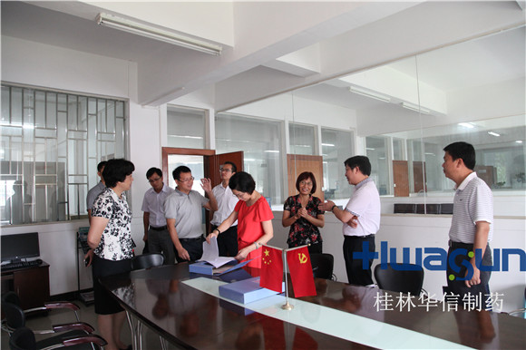 7月30日上午,以自治區(qū)非公經濟組織和社會組織黨工委非公企業(yè)黨建處處長蔣應芳為組長的百日攻堅大行動督查組、靈川縣縣委書記趙奇玲等一行10人,到桂林華信制藥有限公司實地檢查了自開展百日攻堅大行動以來,新成立的“兩新”組織中共桂林華信制藥有限公司黨支部。